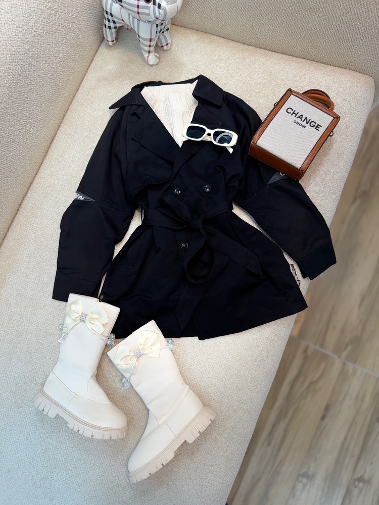 روی کت دکمه دارد و در قسمت کمر،کمربند نیز دارد